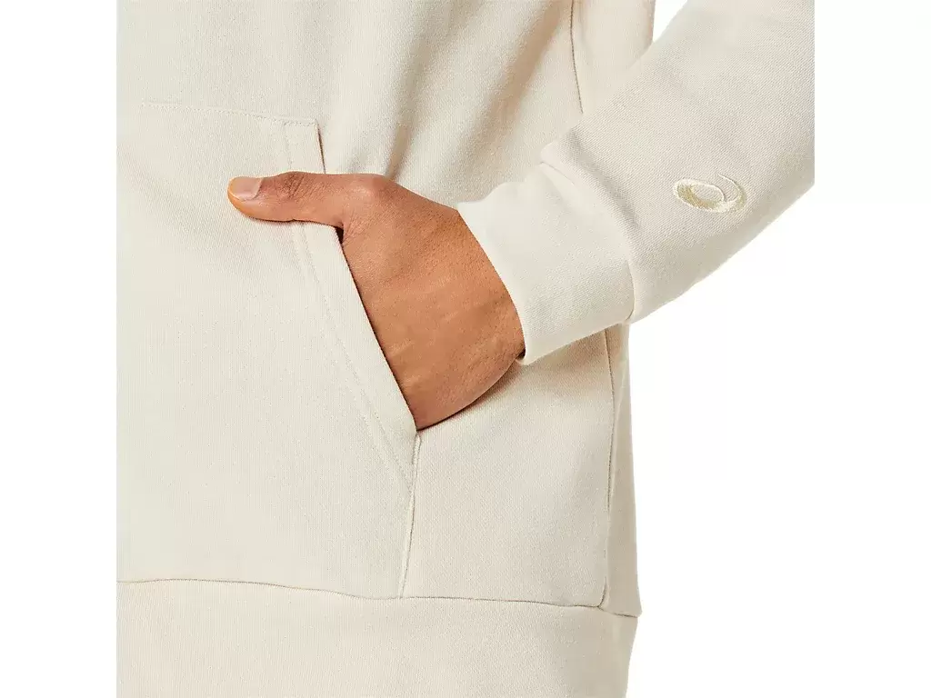 The hoodie features a dropped shoulder for increased freedom of movement, a hood to shield you from the elements, and side pockets to store personal belongings.