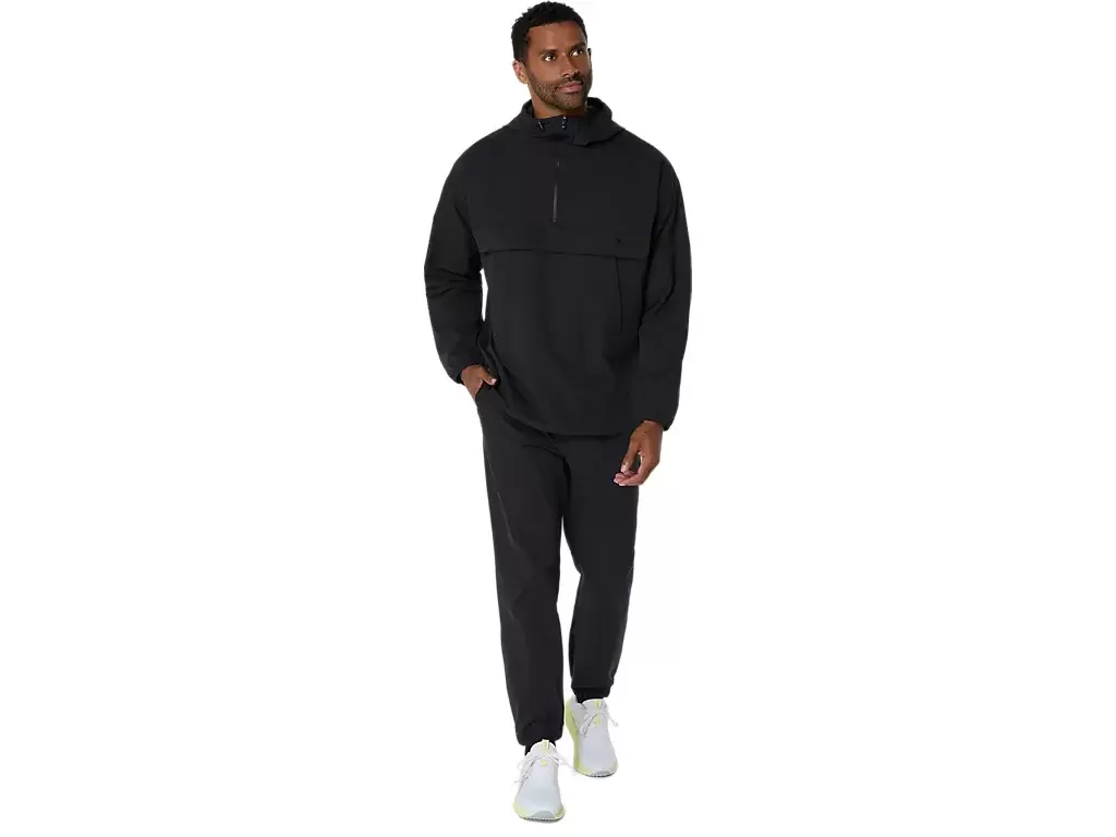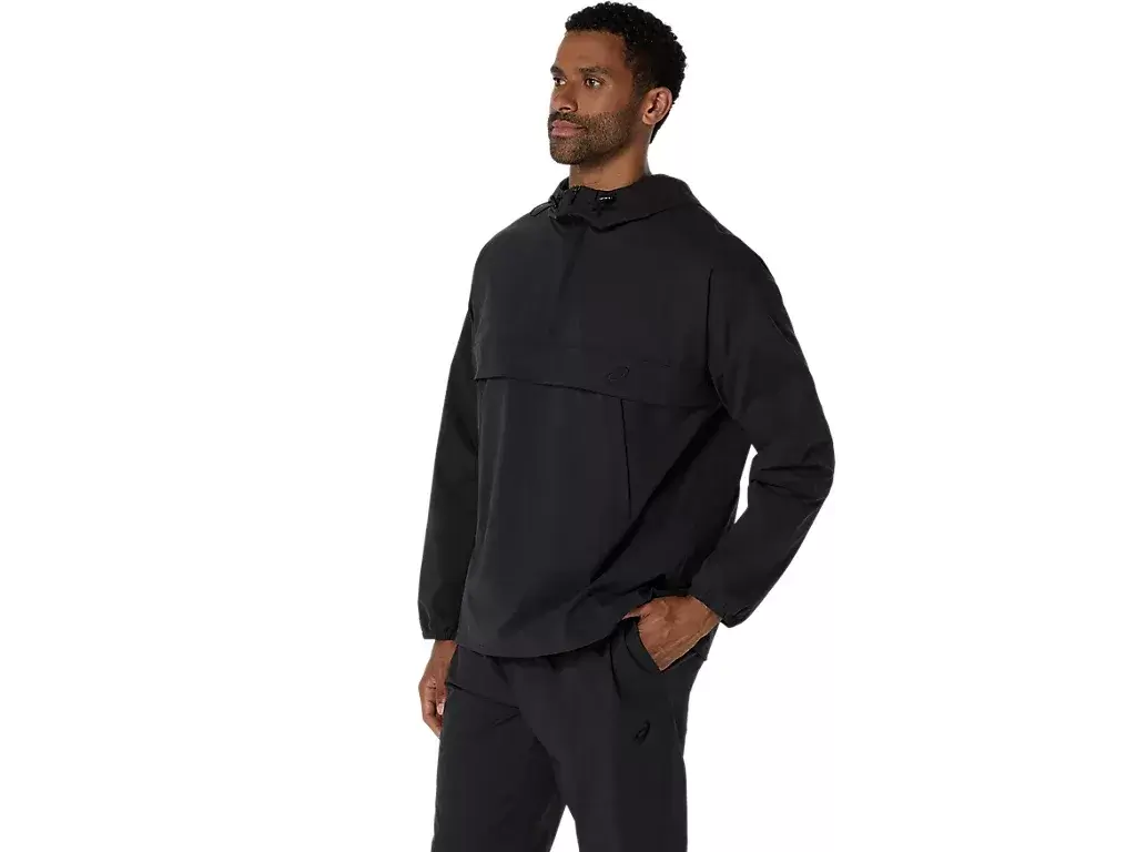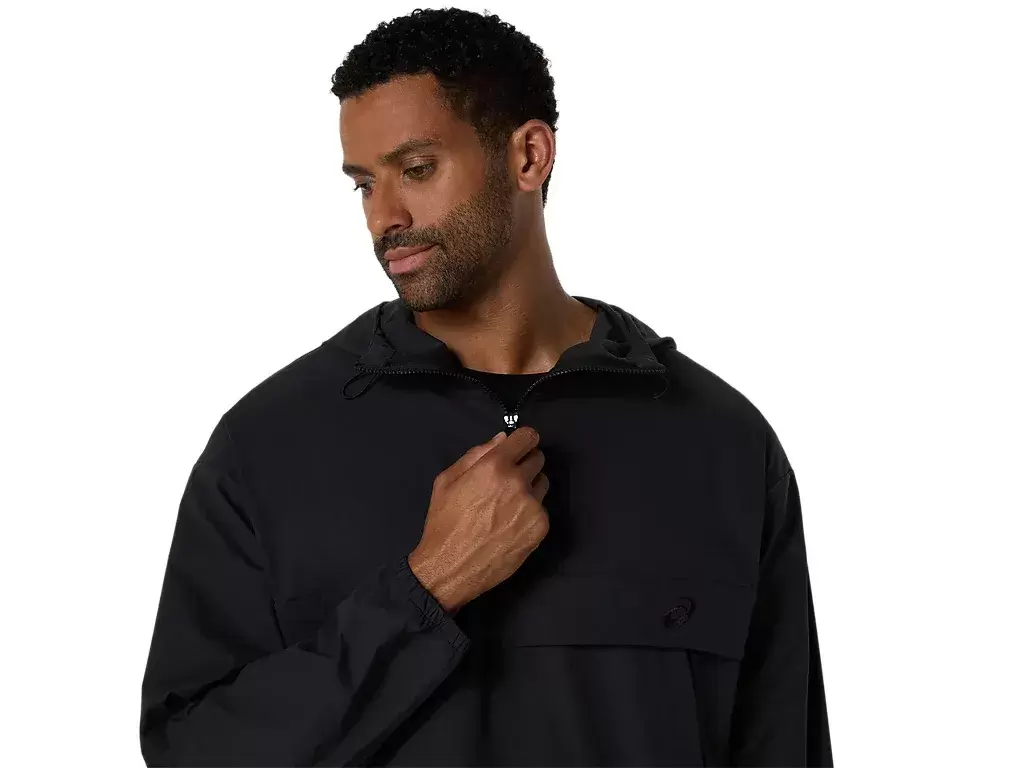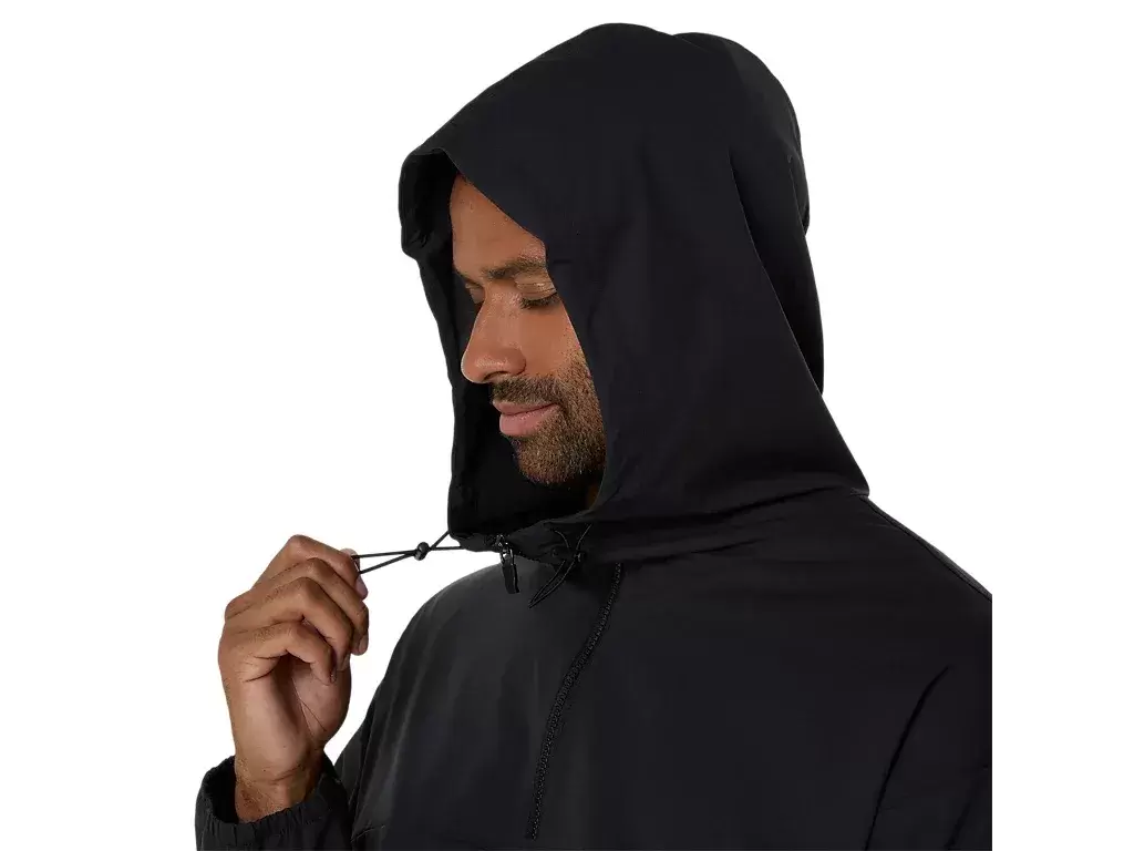 It’s made with a double weave 2-way stretch moisture wicking fabric that is breathable and quick-drying and features side zippered pockets for storing essentials and drawcord and stoppers at the hood and hem for a customized fit.