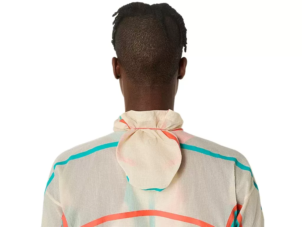 The ROAD PACKABLE JACKET is a lightweight and see-through windbreaker made from a woven fabric with a water-repellent finish to help shield light rain. It has an adjustable hood and can be easily packed into the side pocket when not needed.
