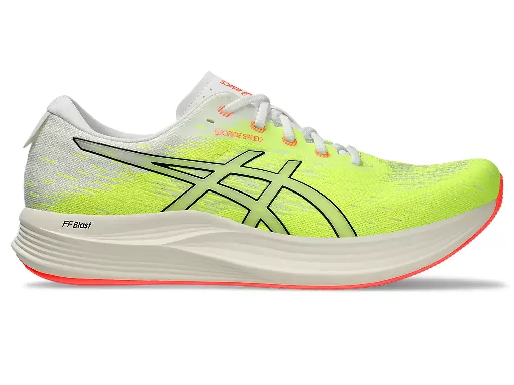 The EVORIDE™ SPEED 2 shoe is a lightweight trainer that’s designed to provide more energy savings than the previous version. This trainer’s updates focus on speed, comfort, and fit.FF BLAST™ cushioning helps promote softer landings and a responsive rebound. Meanwhile, the 3D SPACE CONSTRUCTION™ feature helps reduce weight while improving deformation.Lastly, the AHAR™ rubber outsole material offers improved durability on various surfaces.