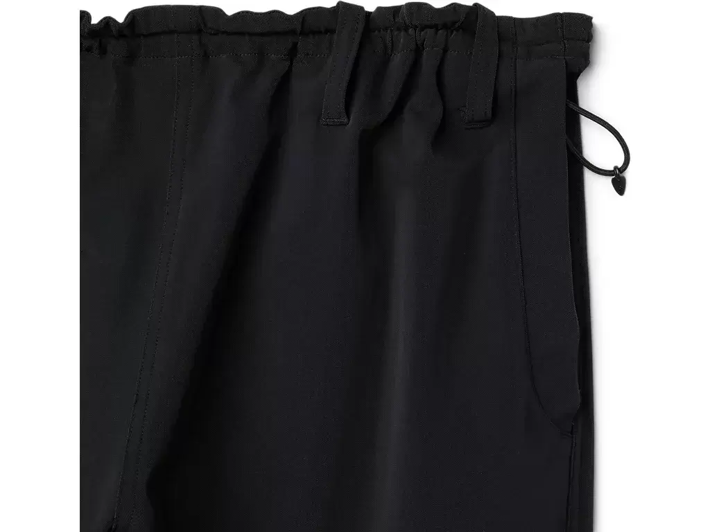 -Double-knee construction-Gusseted crotch-Waist drawcord​-Stretch fabric-94% nylon, 6% PU