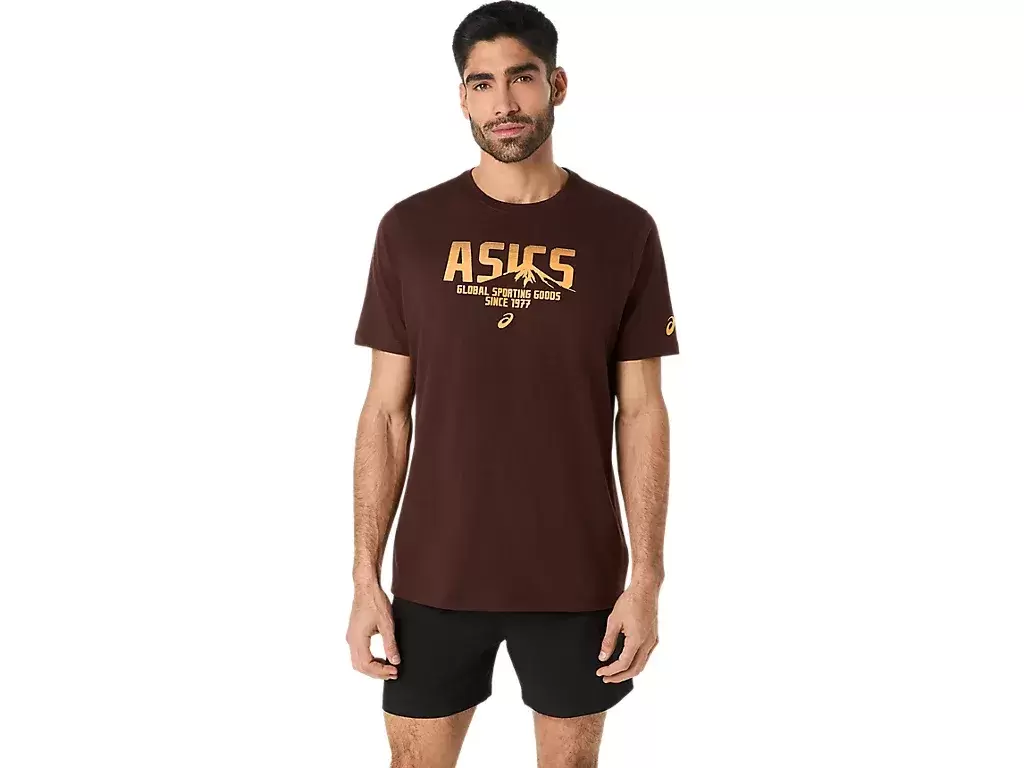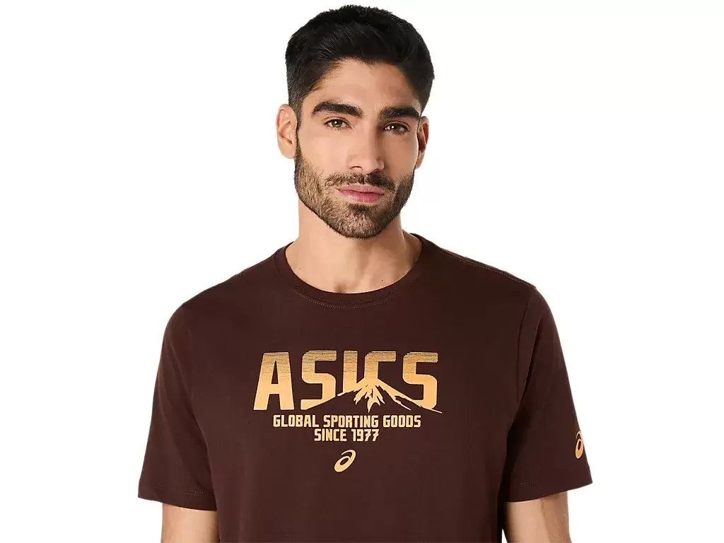 Constructed with a knit fabric, this top is functional for a variety of workout regimens. This tee also incorporates an ASICS logo across the front, as well as a mountain logo that’s worked into the design.