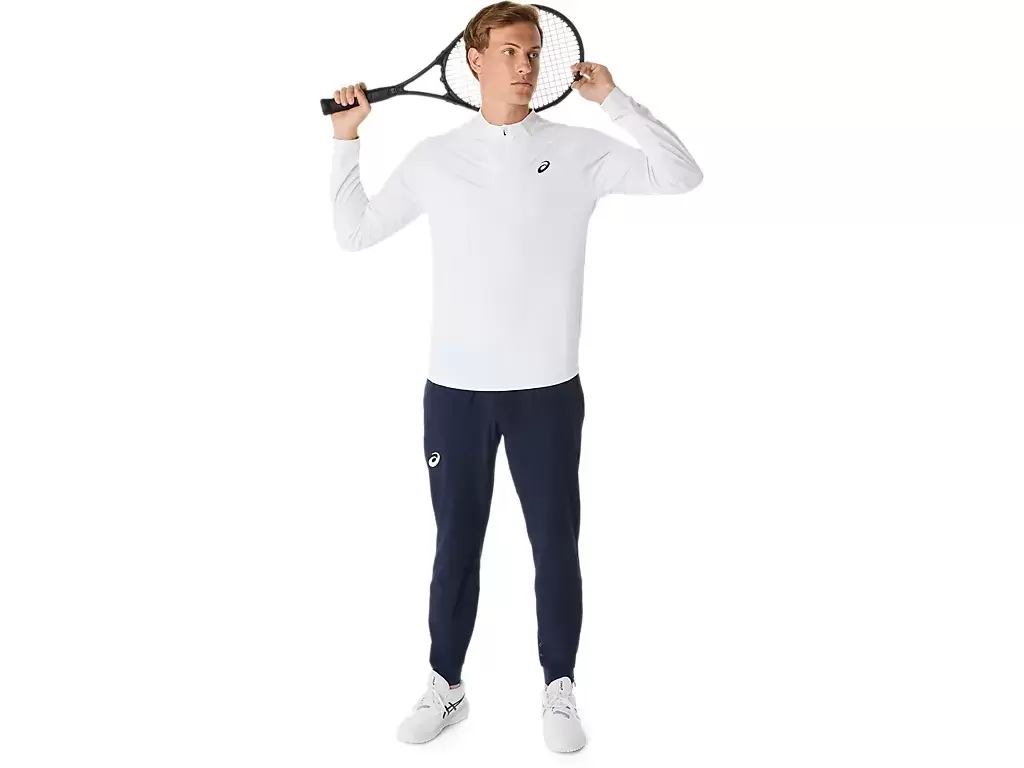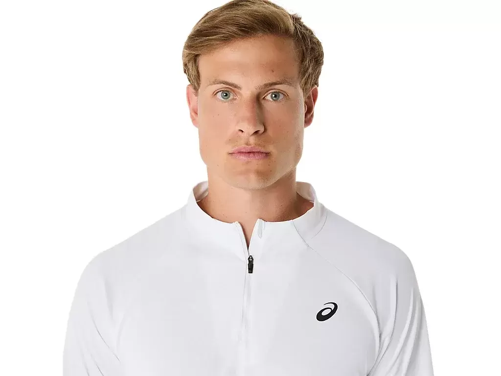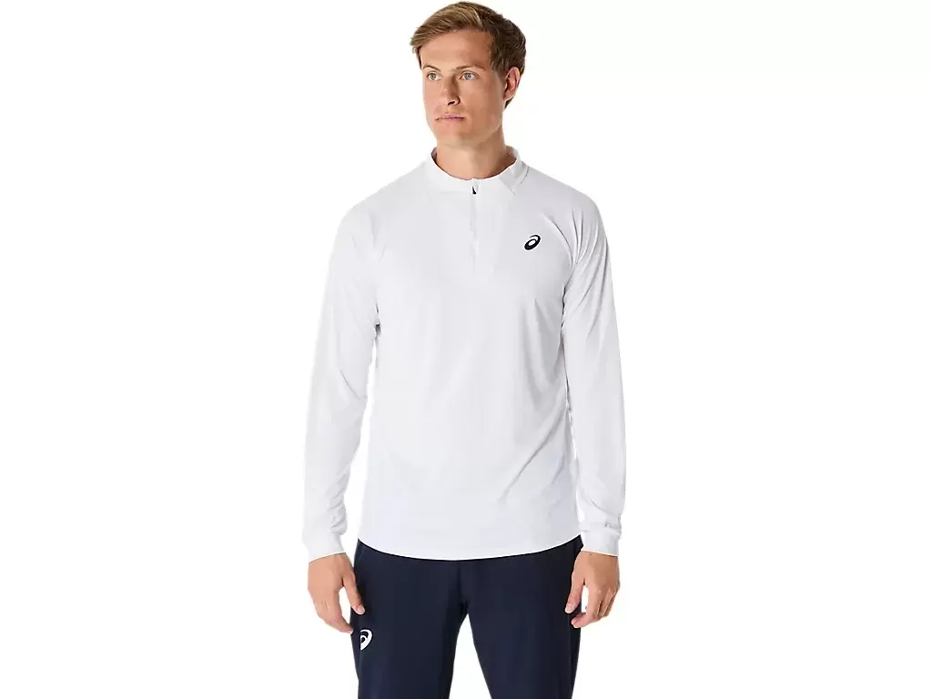 The MATCH LONG SLEEVE 1/2 ZIP TOP is a comfortable garment for warm-ups, cool-downs, and post match.