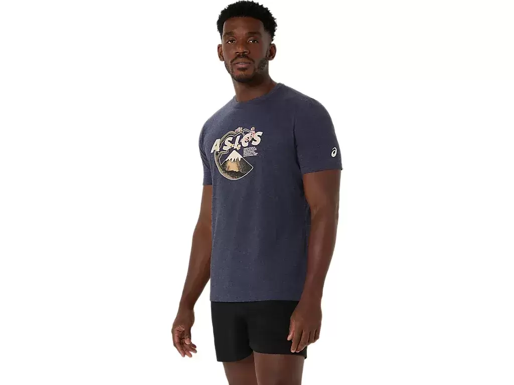 This comfortable knit short sleeve tee takes inspiration from scenes in nature. It features a serene Mt. Fuji and cherry blossom graphic across the chest.