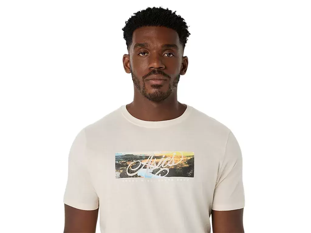 This comfortable knit short sleeve tee takes inspiration from mountainous settings in nature