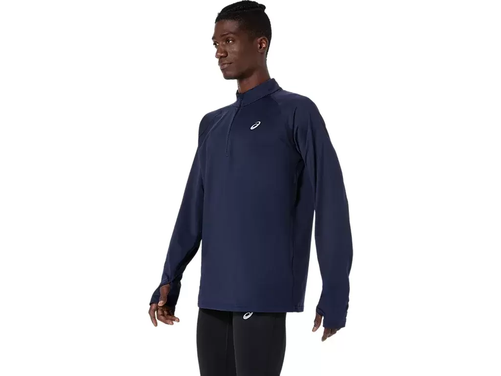 Don’t let the weather stop your run. When temperatures are low, the wind is howling, or the rain won’t let up you need this functional winter 1/2 zip top. Featuring a brushed fabric for warmth, the top also implements a higher neck design to help protect against the wind. Additionally, strategically constructed details, like the chinguard helps provide protection from wind, thumbholes help keep the sleeves from riding up, while the 1/2 zip allows the runner to unzip and experience better ventilation. This 1/2 zip top also has reflective details to improve visibility in low-light conditions.