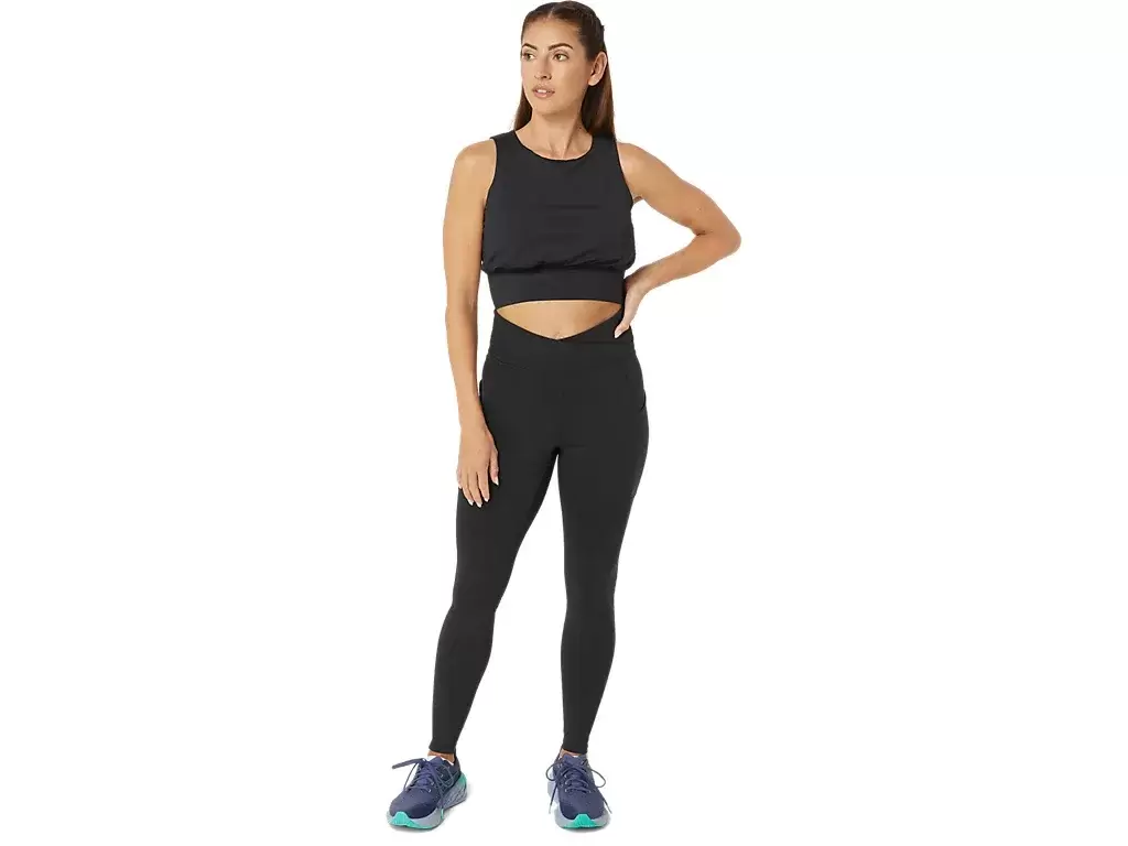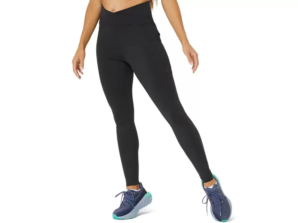 This tight features a high waist band and a kimono inspired cross fold for improved stability during your workouts.
