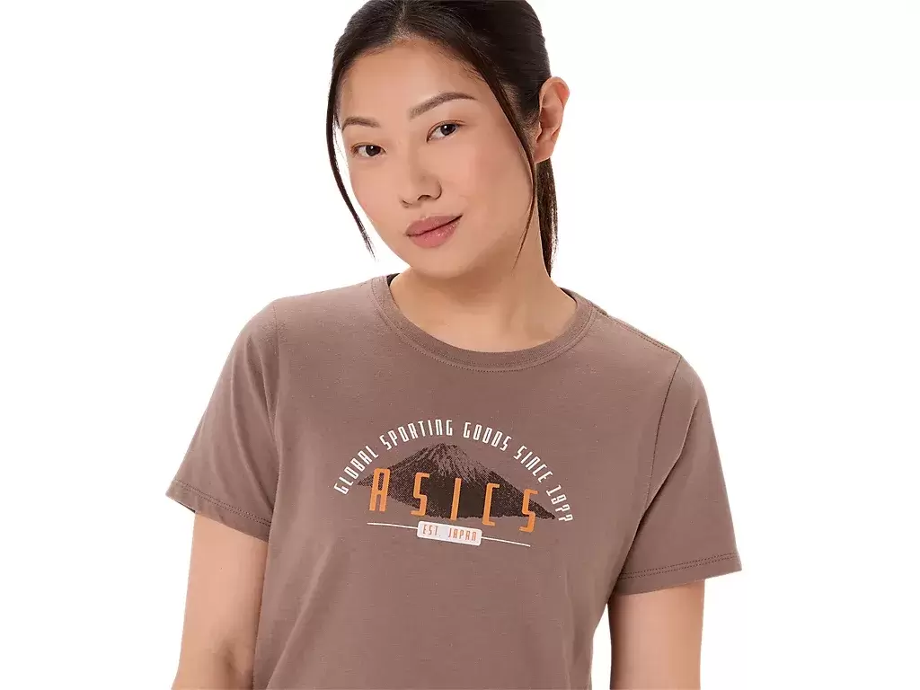 Our ASICS GSG 77 RETRO SHORT SLEEVE TOP is designed with a retro mountain graphic