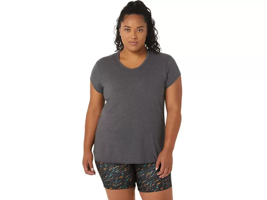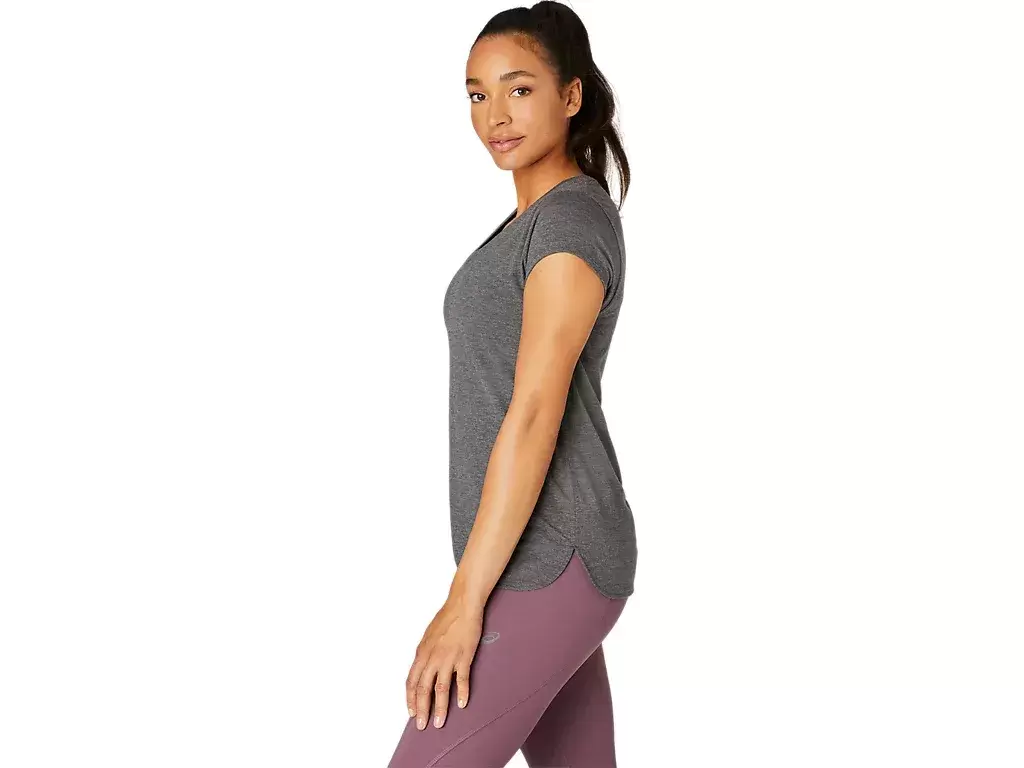 This short sleeve V-neck top is designed to provide a sleek next to the skin feel. It features a comfortable knit fabric that’s paired with forward side seams to improve freedom of movement.