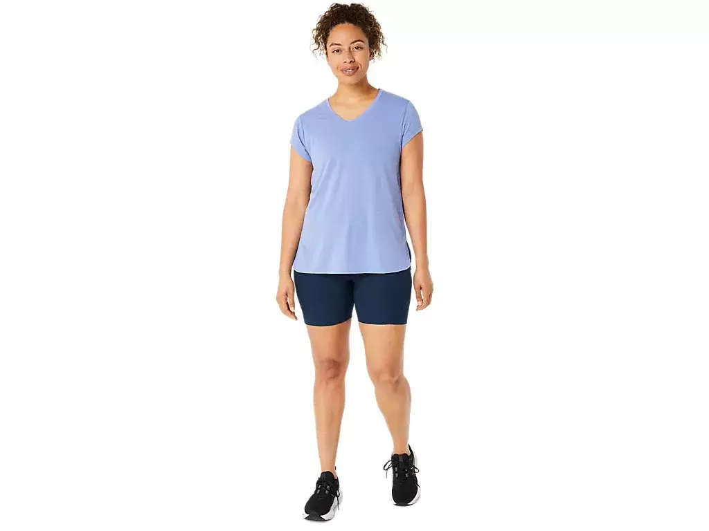 This short sleeve V-neck top is designed to provide a sleek next to the skin feel. It features a comfortable knit fabric that’s paired with forward side seams to improve freedom of movement.