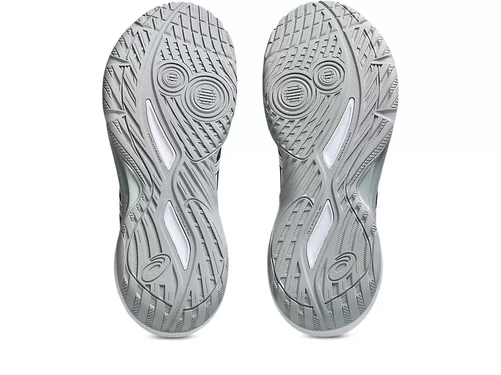 The circular outsole patterns with horizontal grooves are designed to provide advanced traction during side-to-side movements. They help facilitate a quick weight transfer from the center to the inside for a more balanced feel.